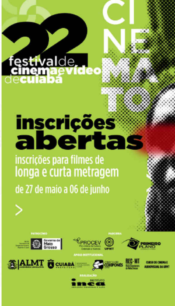 Vem aí o 22º Festival de Cinema de Cuiabá – CINEMATO, com o tema “Decolonizando a Amazônia” que homenageia a cineasta da Selva Silvino Santos. Estao abertas as inscrições de filmes de curta e longa metragem até o dia 06 de junho. Há 32 anos o CINEMATO ousou em realizar o maior movimento do cinema mato-grossense, e é reconhecido como um dos mais importantes Festivais do audiovisual do Brasil. O evento será realizado do dia 14 a 20 de julho de 2025, com exibições no Teatro da Universidade Federal de Mato Grosso (UFMT).