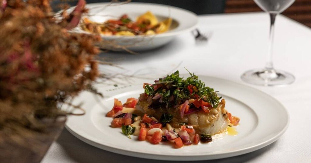 Entre os clássicos da culinária italiana disponíveis para a data, está o bacallà alla romana, composto de lombo de bacalhau com tomate concassé, cebola-roxa, passas, azeitona e pinhole (R$ 540,00, 500 gramas).