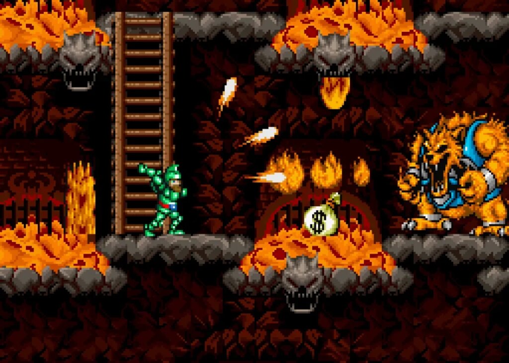 Além do tão esperando encontro para acerto de contas contra o chefe no final da fase, é preciso passar por poucas e boas nesse processo. Inimigos diversos, armadilhas, plataformas variadas (incluindo com espinhos!) e muitos obstáculos aguardam quem tentar avançar aqui.