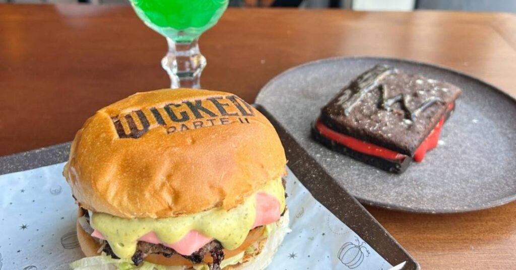 O combo foi criado a partir das personagens Elphaba e Glinda, protagonistas da história, e destaca o contraste entre o verde e o rosa em diferentes preparos. O hambúrguer traz pão brioche marcado com o nome do filme, alface-crespa, tomate, catupiry de cor rosa e maionese verde.