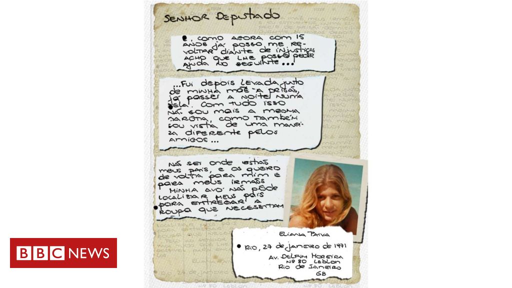 Legenda da foto, Trechos da carta de Eliana Paiva, filha de Eunice e Rubens Paiva, em busca de informações sobre seus pais.