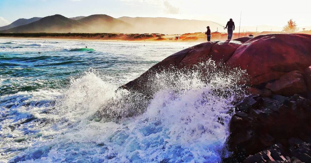 Na lateral, o Pico do Costão é a última divisa da Joaquina e oferece um ângulo mais alto sobre as pedras, ideal para fotografar toda a praia ou curtir um pôr-do-sol no fim do dia.