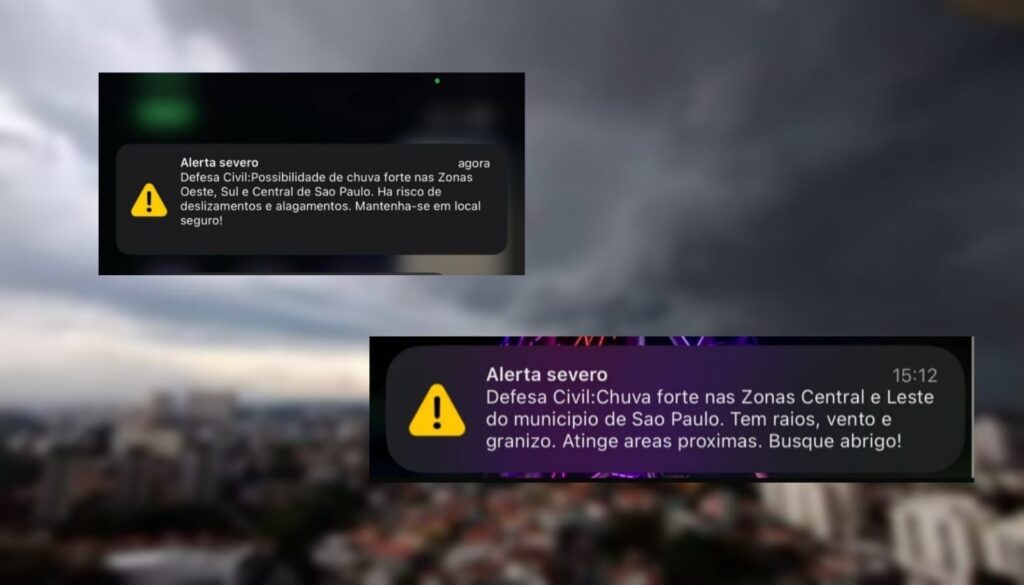 Já os alertas do sistema Cell Broadcast são ativados quando a chuva atinge um volume considerado severo ou extremo. Isso acontece quando os meteorologistas percebem que a precipitação pode chegar a 50 milímetros em uma hora.