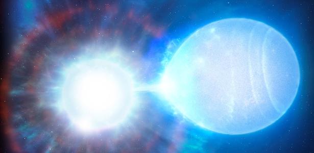 Quando elas se aproximarem ainda mais uma da outra, a mais pesada das duas anãs brancas, devido à sua maior força gravitacional, começará a extrair material da camada externa da mais leve e aumentará sua massa para além do limite a partir do qual uma anã branca sofre uma explosão termonuclear.