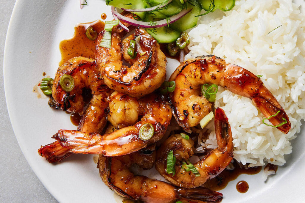 O molho de mel e alho tem dupla função, servindo como marinada agridoce e como molho para os crustáceos. Embora camarões grandes funcionem melhor para esta receita (e sejam mais tolerantes quanto ao tempo de cozimento), os menores também servem.