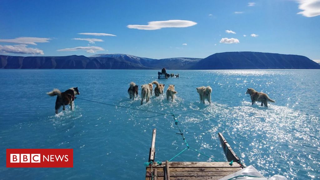 Os cachorros, na verdade, estavam caminhando em meio a uma camada de água derretida, da altura de um tornozelo humano, sobre o gelo marinho em Inglefield Bredning, um sistema de 80 km de comprimento no noroeste da Groenlândia.