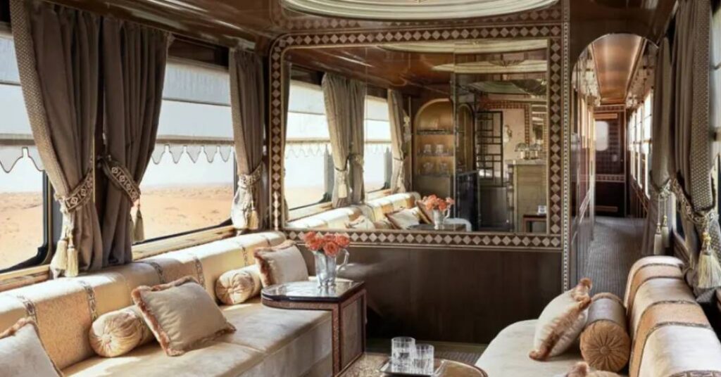 O primeiro trem super luxuoso da Arábia Saudita, o Dream of the Desert, tem previsão de entrar em operação no final de 2026. As reservas já podem ser feitas através do site, caso você tenha dezenas de milhares de reais sobrando na conta. A sensação é de viajar ao lado do detetive Hercule Poirot, imerso em uma das histórias da escritora Agatha Christie, cercado por cenários elegantes, luxuosos e refinados – mas sem os assassinatos, claro.