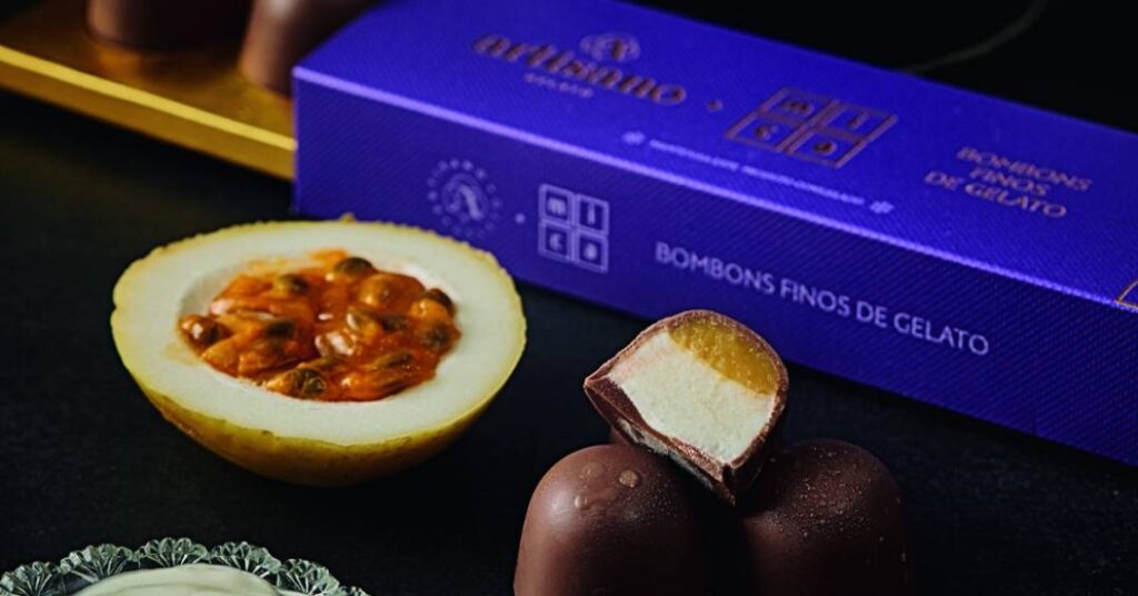 Para comemorar, a dupla apresenta quatro versões de bombons recheados de sorvete, com sabores como o de casquinha ao leite no gelado de mascarpone e caramelo de maracujá.