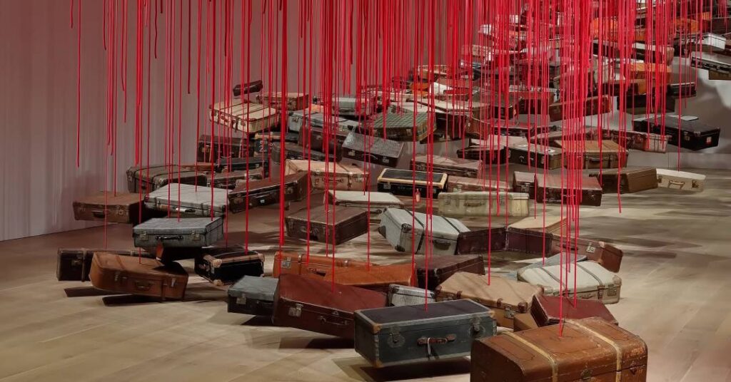 Shiota nasceu em Osaka e produz suas obras sobre as possibilidades na vida humana a partir do ato de tecer e entrelaçar milhares de fios, convidando os espectadores a uma reflexão sobre os percursos e a efemeridade da existência de cada um.