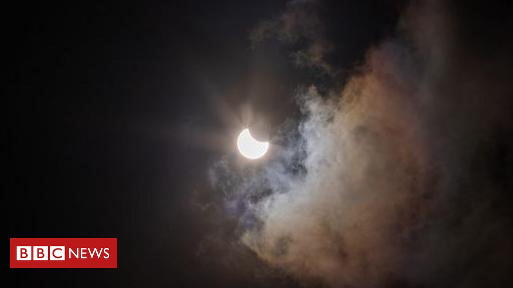 Legenda da foto, O eclipse solar parcial visto de Dacar, no Senegal