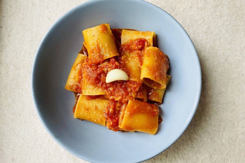 Então cresci o olho quando o jornal The New York Times publicou uma receita de macarrão com molho de tomate e 40 dentes de alho.
