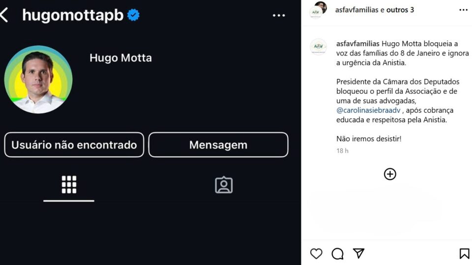 Associação que representa famílias de presos do 8/1 afirma que bloqueio ocorreu após advogada cobrar Motta sobre urgência do PL da Anistia.