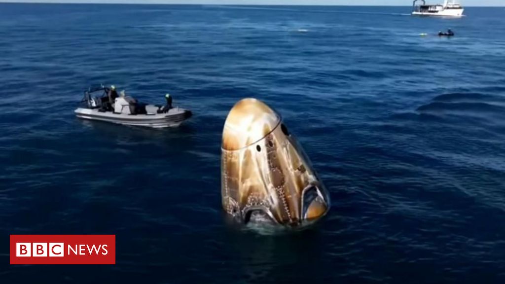A cápsula onde eles fizeram a viagem espacial pousou no mar da Flórida, nos EUA, como era previsto.