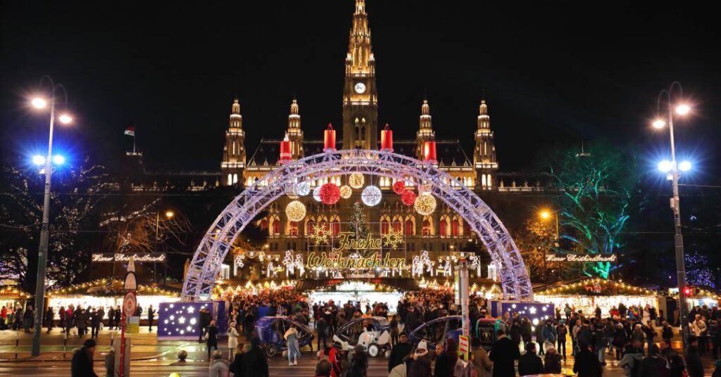 O principal mercado de Natal de Viena é o Christkindlmarkt, na Rathausplatz, em frente à Prefeitura. Ele reúne dezenas de barraquinhas com brinquedos artesanais, enfeites festivos, acessórios de inverno e muitas delícias típicas, funcionando até o dia 26 de dezembro. Ao redor, atrações para crianças – como carrossel, roda-gigante e até uma pista de patinação – completam o clima natalino. Nos arredores, o Burgtheater também ganha decoração especial nesta época do ano.