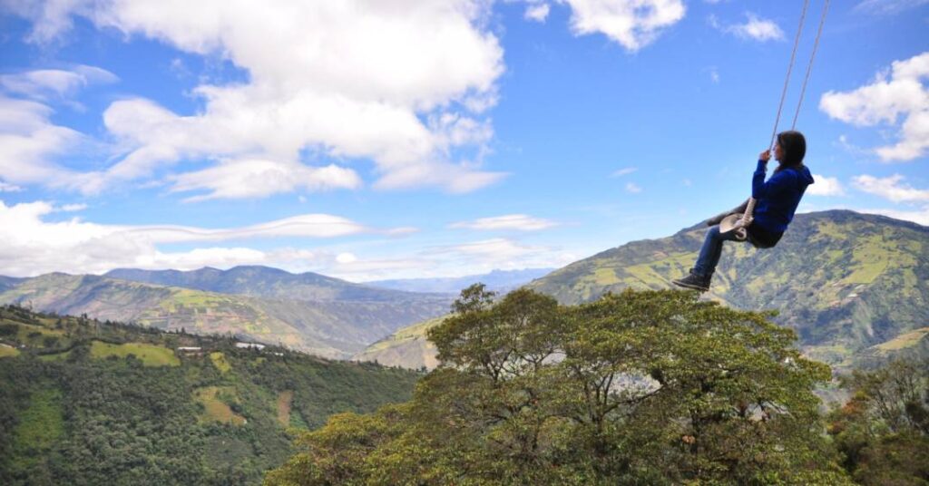 Você já imaginou se balançar na beira de um abismo? E não, não estamos falando em tirolesa. No Equador, isso é possível na cidade de Baños da Água Santa, popular entre os mochileiros. O chamado Balanço do Fim do Mundo foi instalado na encosta do vulcão Tungurahua e garante ser literalmente um ponto alto na sua viagem para o Equador.
