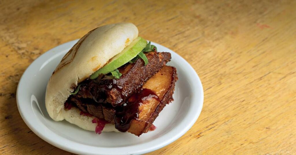 Foi aos 14 anos que Rafael Kodato, chef do Bao Hut, ingressou na gastronomia. No início, encarou a árdua missão de ser pia. Ou seja, lavava as louças do restaurante Kinoshita, ainda dos tempos da Liberdade (nada a ver com o atual). Logo descobriu paixão à culinária. Nos dez anos seguintes, trabalhou na cozinha de diferentes endereços japoneses. Depois de juntar dinheiro — ainda não o suficiente para abrir uma casa — e de testar muitas receitas do pãozinho asiático feito no vapor, montou em 2015 o food truck Bao Hut, que circulava por feiras e eventos. Na época, eram poucos os lugares da cidade que ofereciam bao. O sucesso chegou e, em 2023, Rafael se juntou a dois sócios para abrir a loja com clima de bar em uma pequena casa em Mirandópolis. No menu oferecido por lá, está a seleção de baos. O pork (R$ 25,00) leva pancetta, molho hoisin, relish de cebola-roxa, maçã verde e cebolinha, bom recheio para o pão feito na casa. Para petiscar, a crocante porção de quiabo empanado vem com maionese de missô ao limão (R$ 30,00). Também são servidos alguns pratos, caso do abobo rice (arroz japonês com creme de abóbora e cebola caramelada ao curry, um toque de salsa verde e molho de tomate também com curry japonês; R$ 52,00). Completa-se com fatias de cenoura glaceadas em molho de shoyu, chili oil, gergelim, cebola-roxa e cebolinha. De beber, uma das opções é o chá-mate (R$ 18,00) de produção própria.