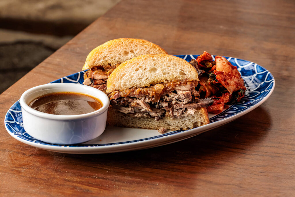 Quem prefere um sanduíche pode pedir o bifana dip (R$ 45), feito no pão da casa com cebola caramelizada e porco preto marinado no tucupi negro. Chega à mesa com molho rotí de porco, para chuchar os pedaços do lanche.
