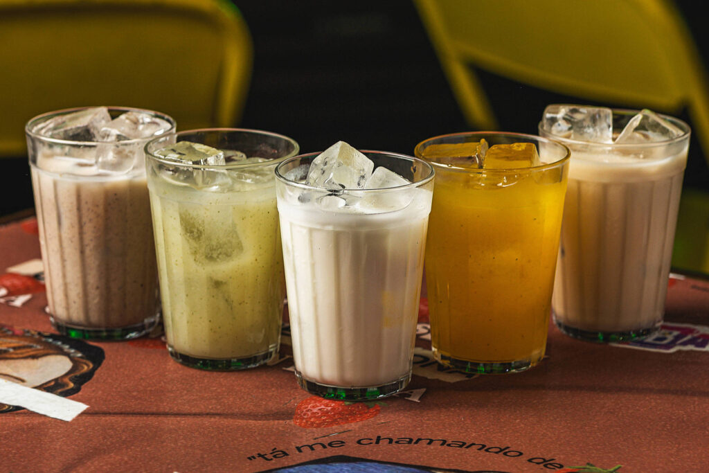 Batidas de maracujá e de amendoim (R$ 18 a dose de 190 ml) são fixas, mas outros sabores aparecem nos fins de semana, como caju, banana, morango, chocolate, cupuaçu, cajá, milho, coco, doce de leite e café. A régua de degustação (R$ 33) tem quatro shots de 50 ml.