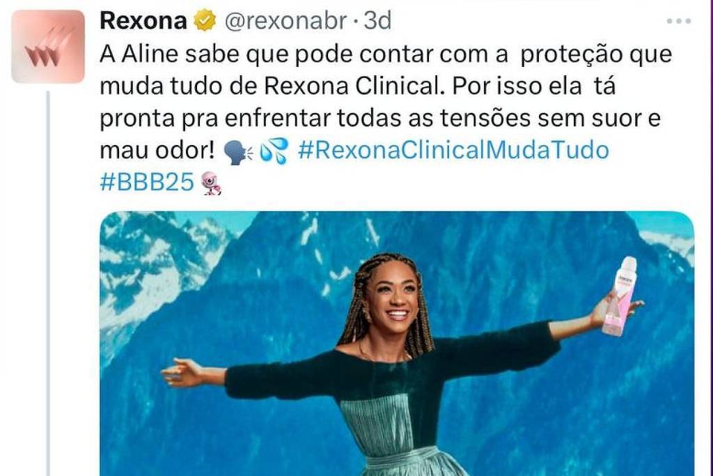 Patrocinadora do BBB 25, a empresa Rexona recorreu às redes sociais para se desculpar com Aline, a última eliminada do reality, por uma postagem feita pela empresa.
