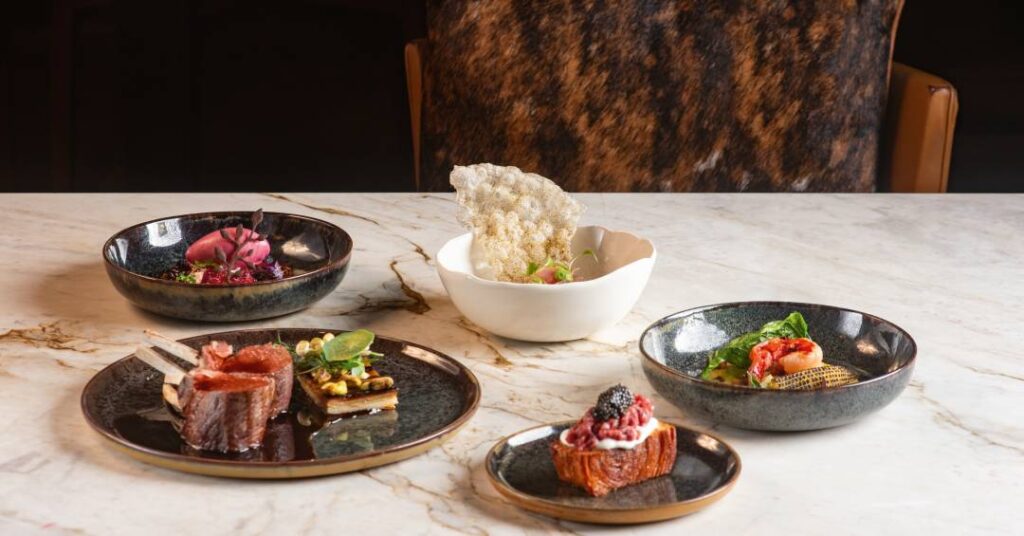 Embora o representante gastronômico mais famoso do complexo culinário do Rosewood São Paulo seja o Taraz, casa com cardápio do chef-estrela Felipe Bronze, a sofisticação culinária no hotel encontra-se mesmo é no Blaise. Ao entrar no pequeno salão do restaurante, esqueça o ambiente kitsch com paredes cravejadas de pedras verdes e que “reproduz” uma cabana dos Alpes da Suíça, país onde nasceu Blaise Cendrars (1887-1961), o homenageado poeta brasilianista avant la lettre. Concentre o foco nos pratos, que podem ser solicitados tanto à la carte quanto na forma de uma degustação, executados pelo chef Fernando Bouzan sob a supervisão da chef-executiva Rachel Codreanschi. O menu completo (R$ 690,00) é a melhor maneira de saborear a sequência de iguarias (os preços individuais estão entre parênteses). Vale conter-se diante do couvert com pães de fermentação natural e avançar para o snack preparado com uma fatia alta de kouign amann, um bolo de massa folhada típico da Bretanha, com creme azedo, tartare de carne angus e caviar Polanco importado do Uruguai (R$ 310,00). Depois do abre-alas glorioso, chega o camarão carabineiro assentado sobre creme de milho levemente picante com cubos de guanciale artesanal e acelga bok choi ao discreto aroma de amburana (R$ 180,00) e o crudo de atum ao molho ponzu de uvaia com creme de abacate tostado, crocante de arroz e alga nori (R$ 110,00). O prato principal pode ser o carré de cordeiro, rosado e sumarento, em seu próprio molho, em combinação harmoniosa com a tarte tatin de alho-poró salpicada de pistache com aïoli e um buquê de cogumelo enoki (R$ 185,00). O fecho igualmente supimpa, que deve ser creditado a Saiko Izawa, uma das maiores confeiteiras em atuação na cidade, é o sorbet de jabuticaba com compota, gelatina e pérolas da própria fruta ao creme diplomata (R$ 65,00). Para incluir a harmonização com vinhos, pagam- -se mais R$ 750,00.