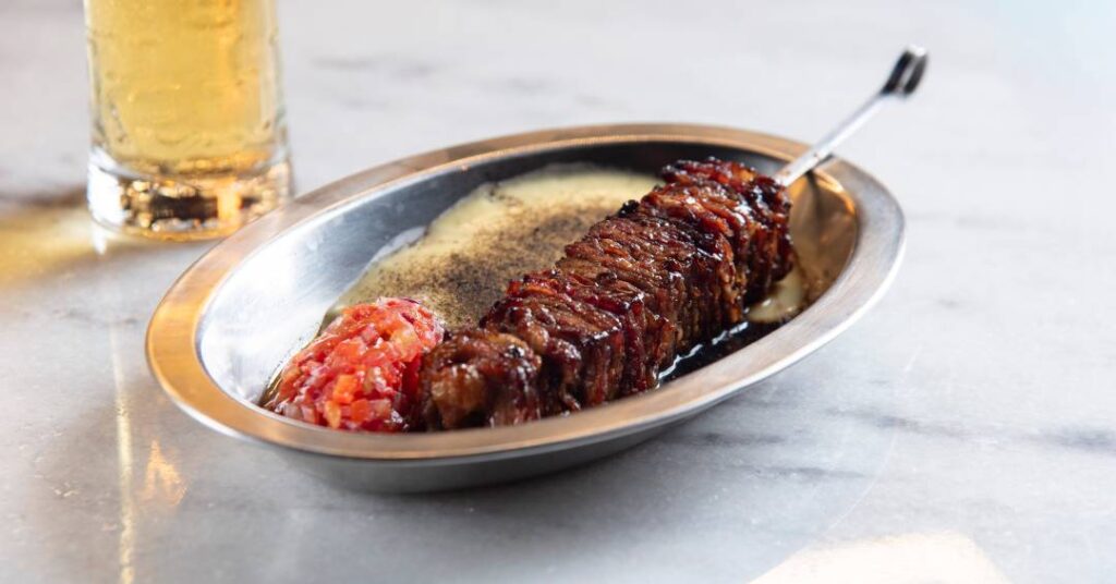 Aberto no fim de 2025, o Bodega Pepito é o bar-restaurante mais badalado do momento. Ajudaram a tornar o lugar um hit o ponto privilegiado em Pinheiros (onde funcionou a extinta hamburgueria Meats), o trabalho de relações-públicas nos bastidores e a afinação de um chef famoso, o catalão Oscar Bosch, sócio das casas Tanit, Nit, Cala del Tanit, Mooi Mooi e, em março, do Marmotta Pasta Bar, no Itaim Bibi. Uma vez no Pepito, o público, de sortidas idades e estilos, é conquistado pelo ambiente com janelões, ladrilhos no chão e mesas de variados formatos. E, mais ainda, pelo menu apinhado de bons pratos e, sobretudo, petiscos — muitos deles, tapas espanholas com influências do mundo todo — servidos em pequenas porções para botecar. O choribao é um bao, pãozinho asiático no vapor, aqui também passado pela chapa, recheado com o embutido chistorra, picles de cebola e maionese picante com, que pena, uma pitada a mais de sal (R$ 49,00, dois). As asas de frango, perfeitamente torneadas em tulipas, são fritas e passadas em uma brilhante calda de laranja e jerez e salpicadas com alho frito (R$ 42,00). Outra atração sem ressalvas é uma versão mais elaborada do churrasquinho “de gato”: o mil-folhas de fatias finíssimas da carne num espeto de metal na brasa, servido com purê de mandioquinha e vinagrete (R$ 47,00). Na hora de beber, a coquetelaria precisa de ajustes — que devem vir em breve, com a chegada de um titular no balcão. Por ora, melhor ficar no chope (R$ 20,00, Heineken) ou em um dos cinquenta rótulos de vinho, que podem ser bebericados enquanto se aguarda na fila, quase obrigatória à noite.
