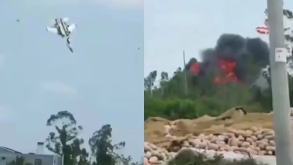 Bola de fogo: avião de guerra chinês cai e causa enorme explosão