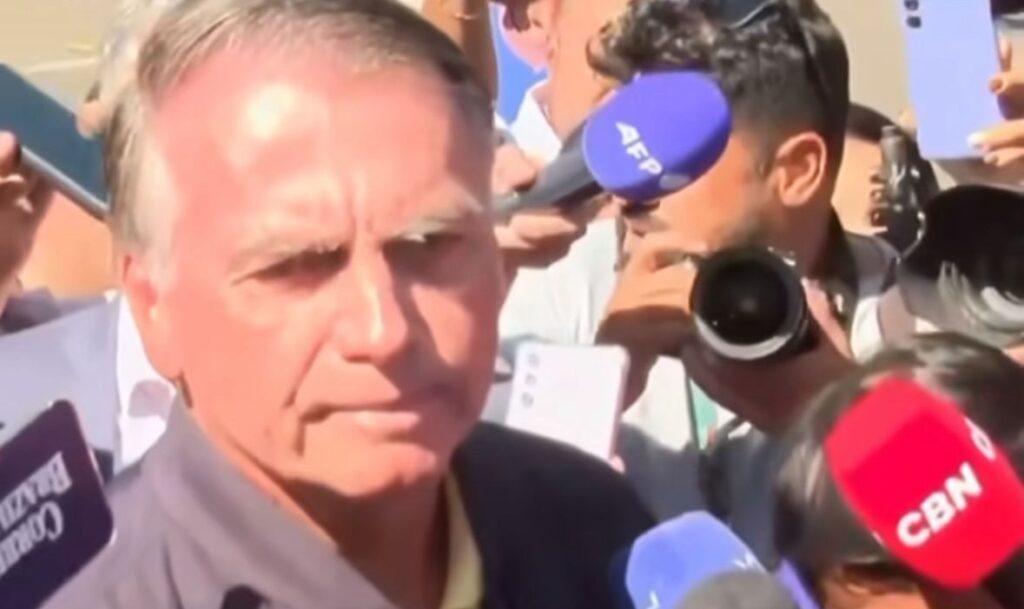 Bolsonaro explica aos jornalistas sobre  a operação da  Polícia Federal. “Fizeram a apreensão em casa, pegaram R$ 7 mil  e aproximadamente   US$ 14 mil e R$ 8 mil dvidamente com origem. É um novo inqúerito e estou também dentro dele… É um inquérito político, nada de concreto existe alí”.