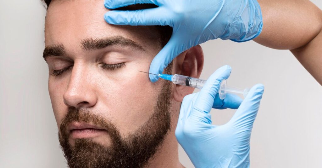 No rosto masculino, a musculatura é geralmente mais densa e ativa, o que exige doses personalizadas e um olhar técnico cuidadoso. Além disso, ao contrário do rosto feminino, em que buscamos o arqueamento das sobrancelhas, nos homens a ideia é mantê-las retificadas.