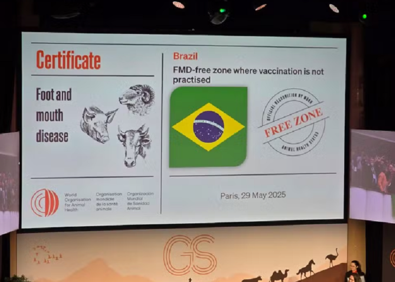 O status sanitário foi aprovado na 92ª Assembleia da OMSA, que ocorre durante esta semana em Paris.