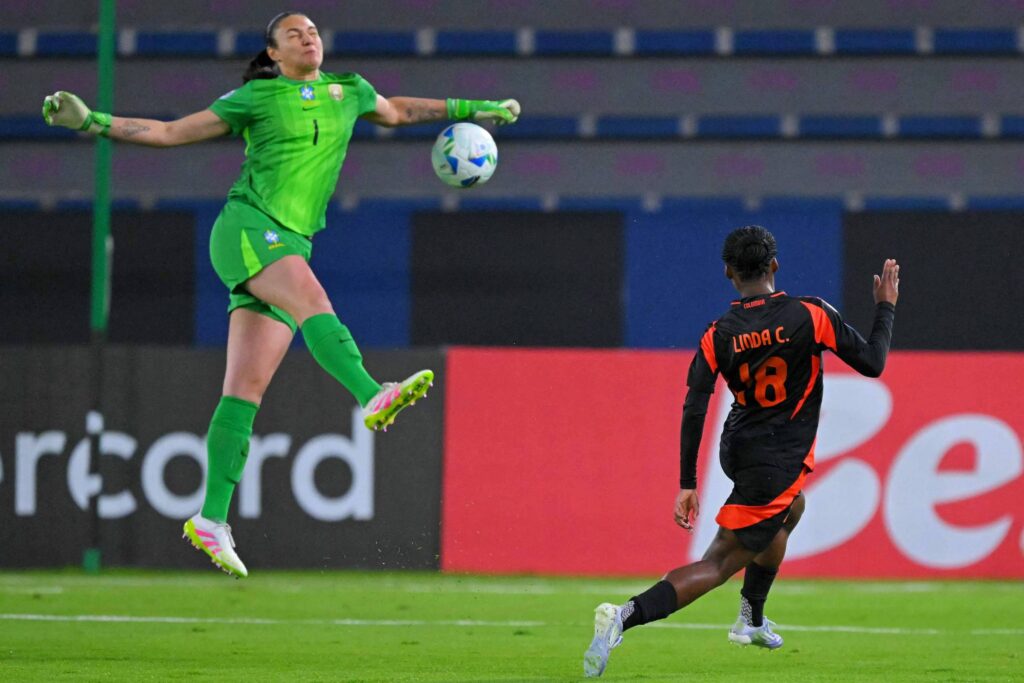 O cenário ficou ainda mais complicado aos 22 minutos, quando a goleira Lorena se precipitou ao sair de sua área para cortar um chute de Linda Caicedo, desviou a bola com o braço fora da grande área e acabou expulsa.
