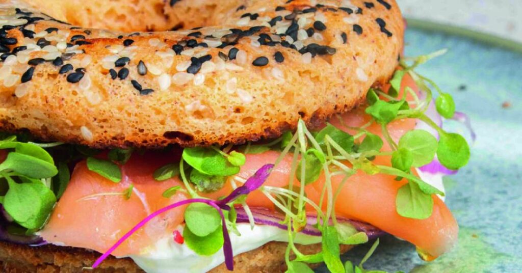 Brunch na Canelle: bagel proteico com salmão  (Victoria Caldini/Divulgação)