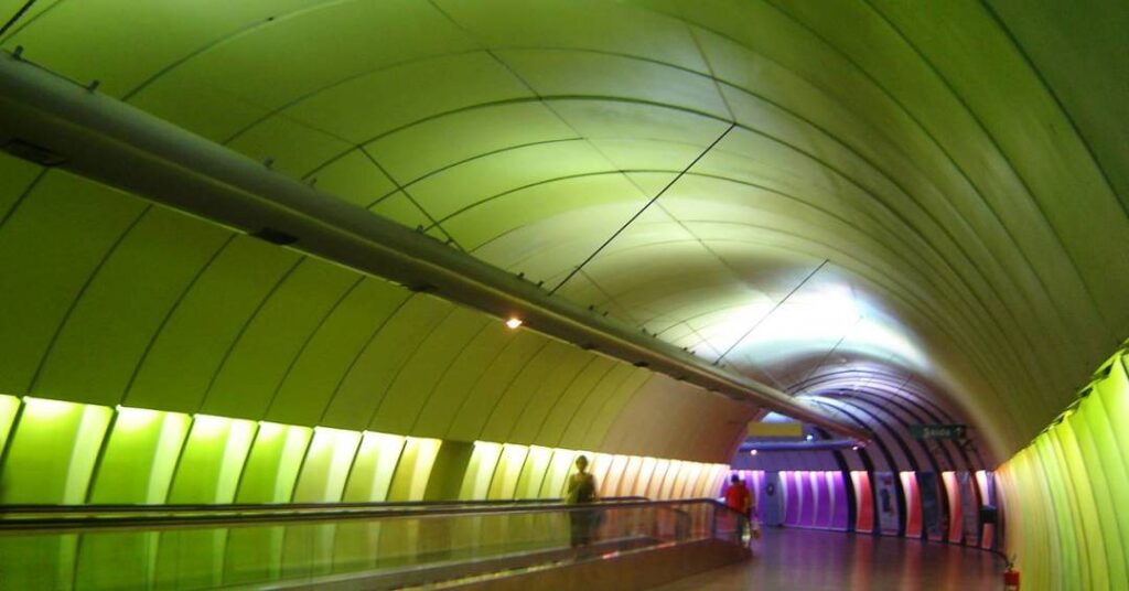 Passageiros da linha 1 do metrô carioca que embarcam na estação Cardeal Arcoverde, em Copacabana, são recebidos por um longo corredor colorido de cerca de 200 metros de extensão. Escavado na rocha devido aos desafios técnicos da construção, o caminho busca quebrar o choque da transição da rua ensolarada para o subterrâneo de uma das paradas mais profundas do Rio de Janeiro.
