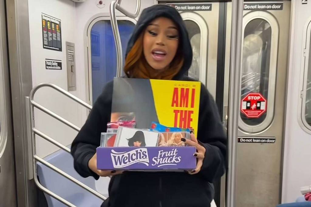 Depois de vender seu novo álbum “Am I The Drama?” nas ruas de Nova York, Cardi B resolveu fazer o mesmo no metrô da cidade. Vestida com um calça e casaco de moletom com capuz, ela entrou em um dos vagões e anunciou seu produto como se fosse uma artista em início de carreira, que precisa levar dinheiro para casa.