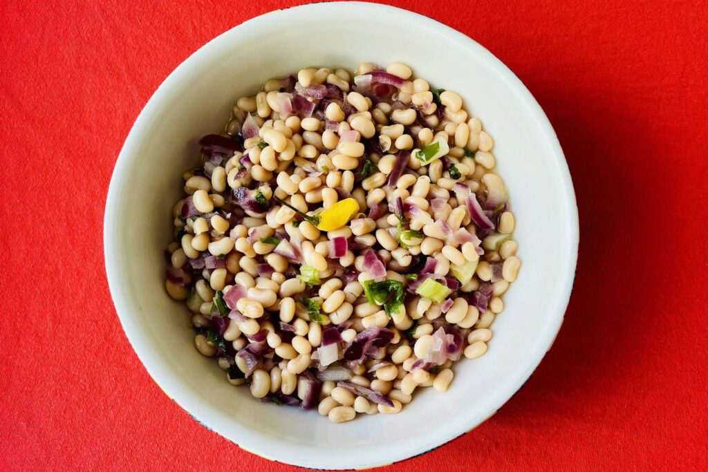 Salada de feijão-manteiguinha e pimenta