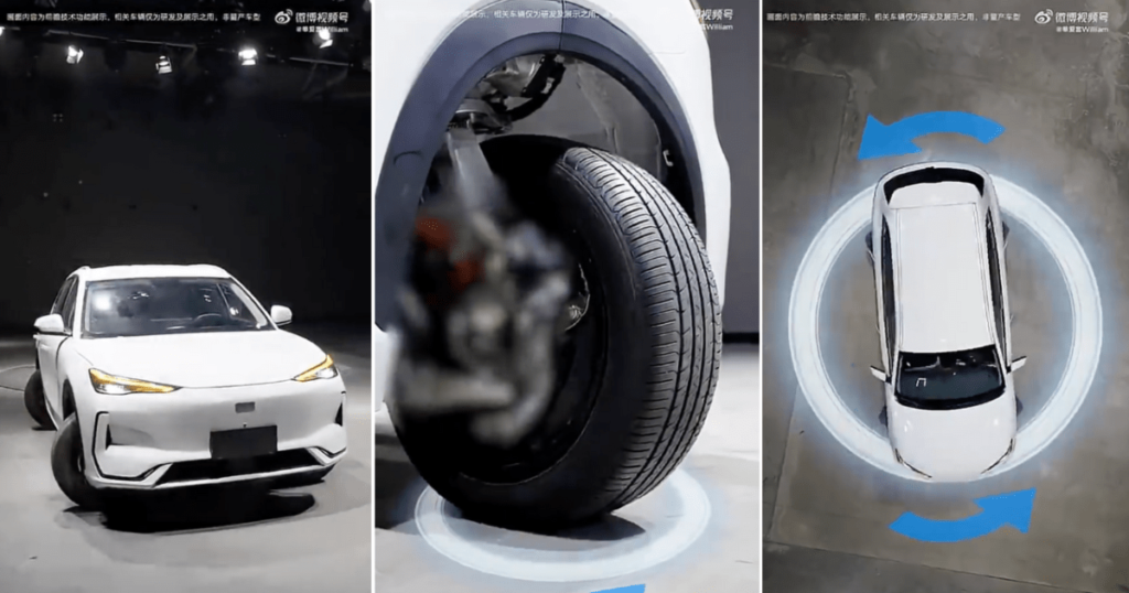 Em um vídeo compartilhado pela Geely, quatro unidades de condução foram integradas diretamente nas rodas.