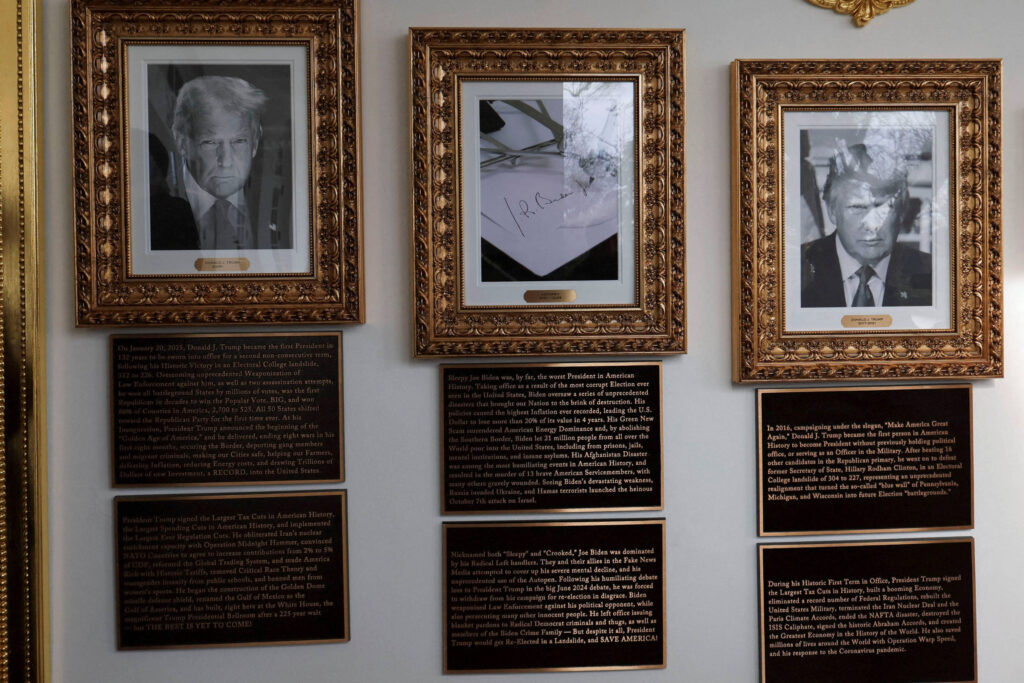 Donald Trump mandou instalar placas na chamada “Calçada da Fama Presidencial”, uma galeria de retratos de ex-mandatários dos Estados Unidos na Casa Branca, com provocações e descrições ofensivas dos políticos.