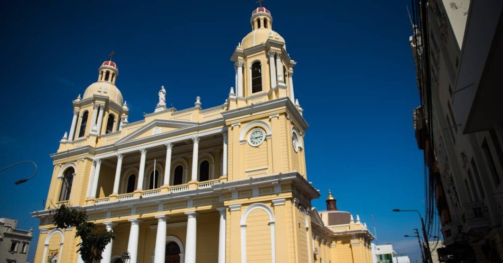 A Catedral de Chiclayo, também conhecida como Catedral Santa María, é um dos principais ícones arquitetônicos e religiosos do norte do Peru. Localizada em frente ao Parque Principal da cidade, no coração de Chiclayo, essa igreja neoclássica se destaca por sua profunda conexão com a história e a fé da região. A catedral é a sé episcopal da diocese de Chiclayo, que foi governada por Leão XIV por quase 10 anos.