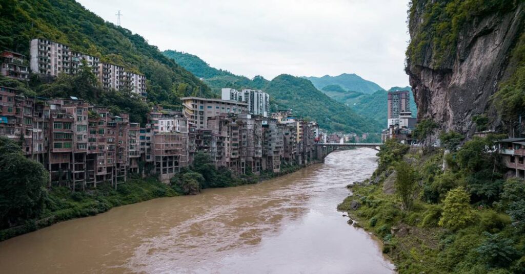 Mas essa pequena cidade espremida entre duas encostas de montanha e um rio tributário do Yangtzé se tornou alvo de curiosidade global após imagens de drone garantirem a ela o título pelo qual Yanjin é conhecida atualmente: o de “cidade mais estreita do mundo”.