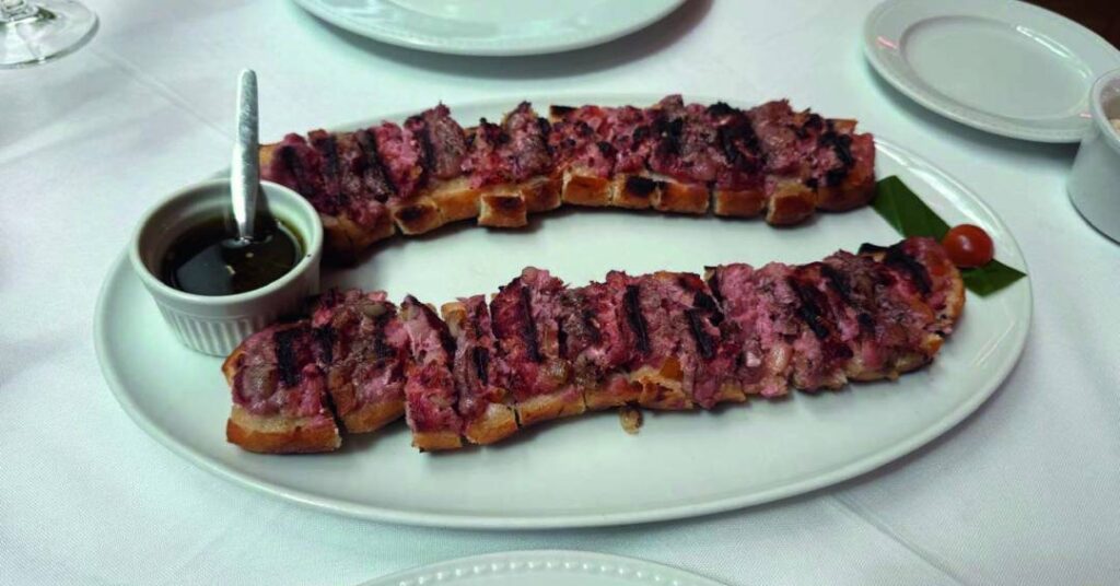 > Pobre Juan. Servido como um bocado, é um pãozinho de batata macio com linguiça parrillera, finalizado na brasa e regado por chimichurri. Custa R$ 44,00. Rua Comendador Miguel Calfat, 525, Vila Olímpia, telefone 2397- 0099. Tem acessibilidade. $$$