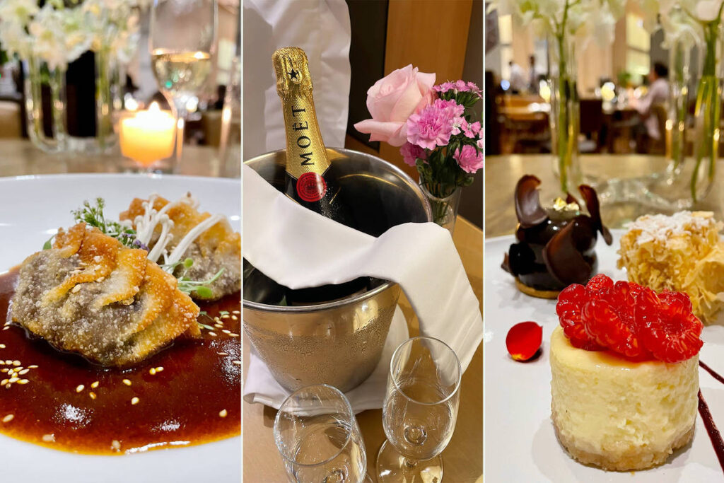 O Grand Hyatt São Paulo preparou um jantar de Dia dos Namorados com cinco tempos preparado pelos Chefs Diogo Menezes e Nelson Tanaka. Custa R$ 900 o casal – com harmonização vai para R$ 1.300. Dentre as entradas, ostra com sorbet de manga e pipoca de quinoa e guioza de rabada in brodo. Os principais trazem pargo grelhado com vieiras e purê de couve flor e Denver black angus grelhado com nhoque de mandioquinha e espuma de parmesão. A Trilogia do Amor é uma sobremesa formada por um cheesecake de rosas, mil-folhas de doce de leite e fondant de chocolate meio amargo.