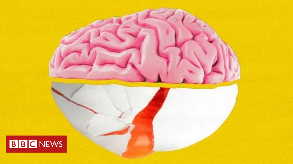Cérebro dentro de uma casca de ovo com a gema saindo por baixo