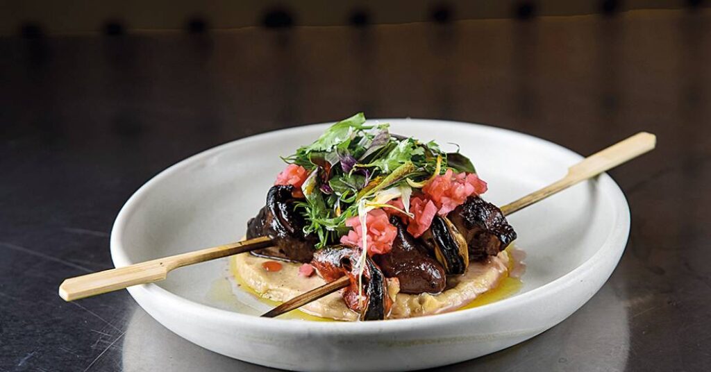 A cozinha, agora sob a orientação da chef Antonella Caruso, faz pedidas como o espeto de coração de pato e mexilhão com um ótimo toque de brasa mais purê de couve-flor e picles de maxixe e de rabanete (R$ 49,00).