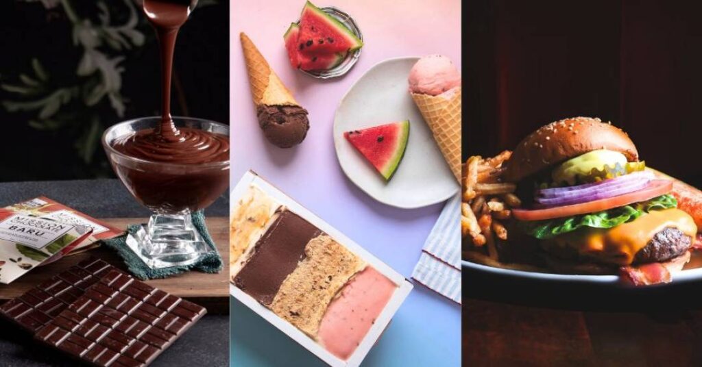 Chocolate, sorvete e hambúrguer: categorias de Comidinhas (Ligia Skowronski/Veja SP)