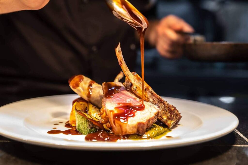 O menu varia ao longo dos meses. Em dezembro, as opções de entrada incluíam a truta curada com maçã e beterraba, rilette (carne confitada e desfiada) de pato com chutney de ameixas e agrião, e uma tartelete vegetariana de abóbora com pignoli e cebola confitada, com preços entre 10 e 12 libras (R$ 71 a R$ 85).