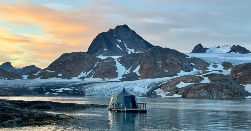 Uma cabine flutuante na costa leste da Groenlândia tem dado o que falar: para muitos, essa inusitada opção de hospedagem, com vista para as geleiras da região, provavelmente leva o título de Airbnb mais remoto do mundo.