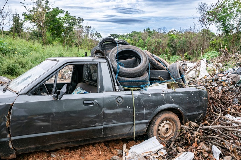 “Durante as diligências, identificamos o descarte irregular de pneus e resíduos da construção civil. Essa infração configura crime ambiental, considerando que o material polui o solo. O enquadramento é o artigo 573 da Lei 04/1992. Avaliamos a vantagem pecuniária, as consequências ao meio ambiente e à saúde humana. Neste caso, a infração constatada, em específico, apresenta três agravantes, sendo considerada uma infração de natureza gravíssima. A penalidade para crimes gravíssimos varia de R$ 25 mil a R$ 1 milhão”, afirmou Riverson.