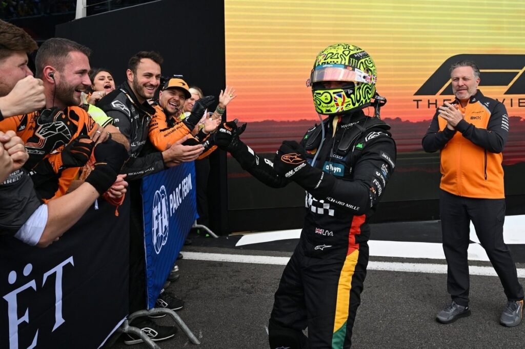 A corrida caótica em Silverstone foi marcada por estratégias diferentes, abandonos, rodadas e muita chuva, terminando com Lando Norris vencendo em casa pela primeira vez na Fórmula 1. Com isso, o britânico diminui a diferença para apenas oito pontos de Oscar Piastri, líder do campeonato.
