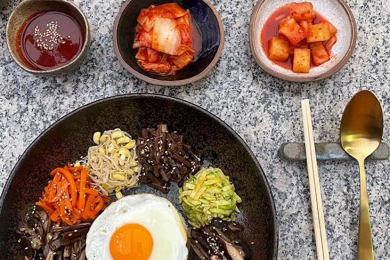 O cardápio ela vai adaptando com as receitas que mais gosta e que dão certo. Estão lá pratos tradicionais, como bibimbap, japchae e topokki, em porção individual que satisfaz.