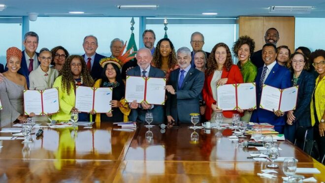 O presidente Luiz Inácio Lula da Silva (PT) sancionou na última terça-feira (3) a lei que amplia em 30% as cotas para negros, indígenas e quilombolas em concursos federais. “A gente tem que trabalhar para permitir que esse país um dia possa ter uma sociedade com a cara da própria sociedade nas repartições públicas brasileiras”, disse o presidente.