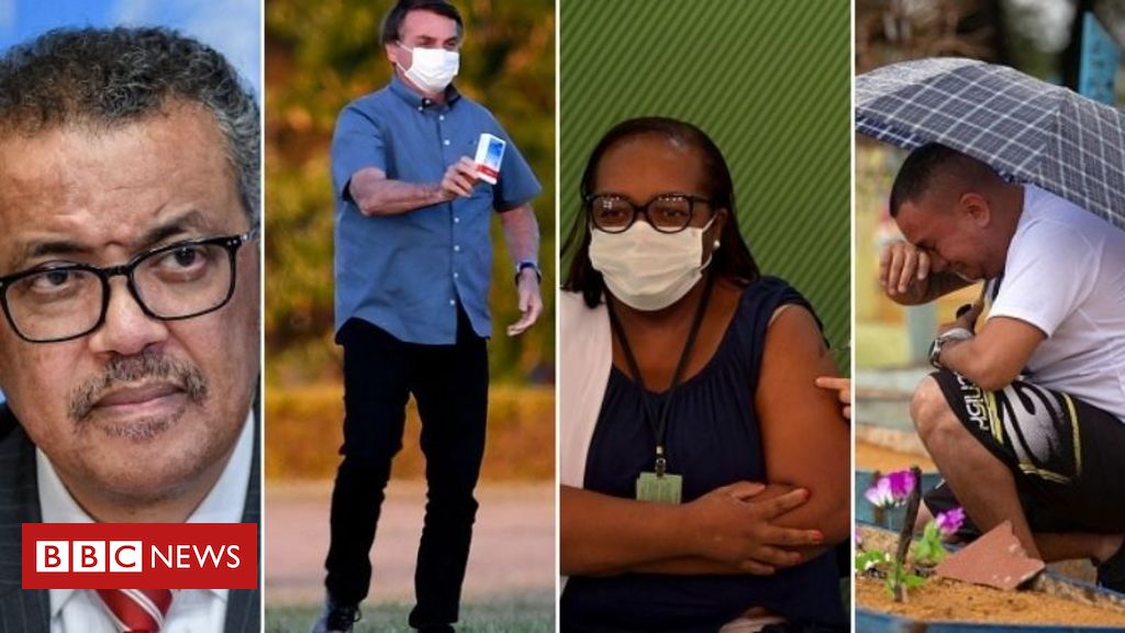 Caminhões militares para transportar corpos na Itália. Hospitais de campanha. Crise do oxigênio em Manaus. Testes com vacinas. Campanhas de imunização em massa. Notícias falsas. Protestos. Trabalho remoto.